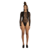 This artisanal bodysuit plays with different mesh opacities by layering and overlapping patterns and features sharp deliberate lines, an open back, raw hem on sleeve, a 3-snap closure at crotch, and sold with a front pouch or without pouch so you seamlessly transition from the day to night.